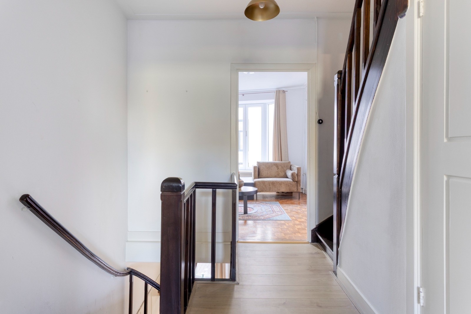 Binnen vallen de hoge plafonds, de stijlvolle trapopgang en de rustige, lichte afwerking direct op, wat de woning een warme en uitnodigende sfeer geeft. De woning maakt deel uit van het beschermd stads- en dorpsgezicht, waardoor het historische straatbeeld zorgvuldig behouden blijft.
