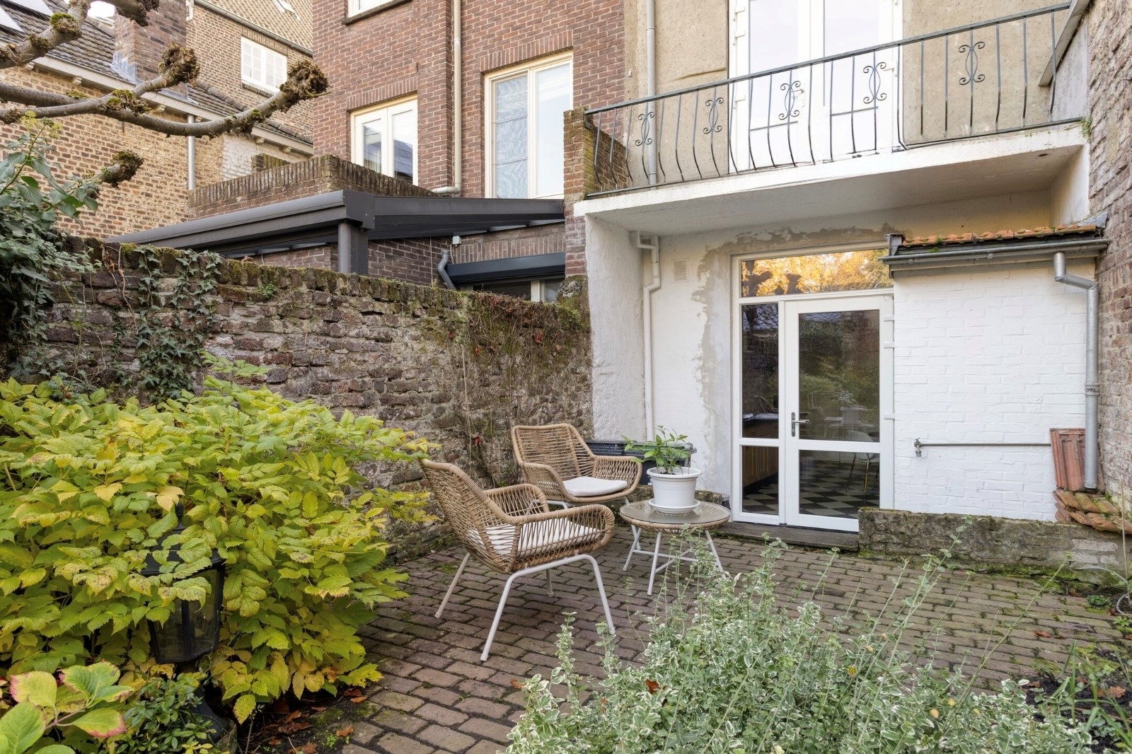 Buitenruimte De achtertuin ligt op het noorden maar is door de beschutte ligging en historische bakstenen muren een sfeervolle en groene stadsoase. Dankzij de stadse omgeving en het volwassen groen is er volop privacy en kunt u op verschillende plekken genieten van de buitenlucht.
